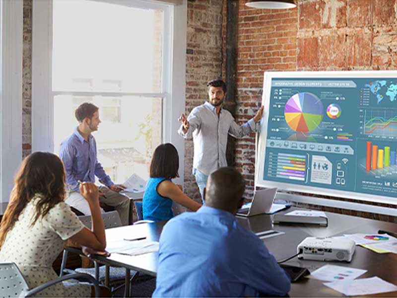 - جلسات کاری: نمایش ارائهها، نمودارها، ویدئوها و دادهها با کیفیت بالا.