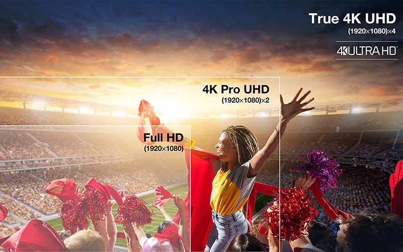 این پروژکتور از رزولوشن 4K ULTRA HDبا 8.3 میلیون پیکسل پشتیبانی میکند. بنابراین، تصاویری با وضوح فوقالعاده و جزئیات دقیق** ارائه میدهد که حس یک سینمای واقعی را به شما القا میکند.
