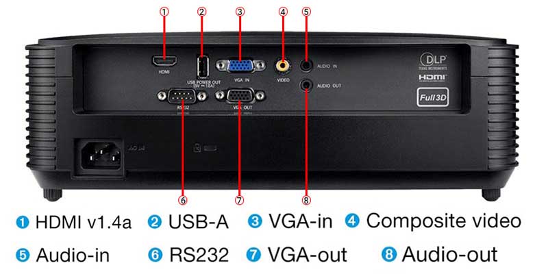 این پروژکتور از ورودیهای متنوع پشتیبانی میکند که امکان اتصال به دستگاههای مختلف را فراهم میکند:
