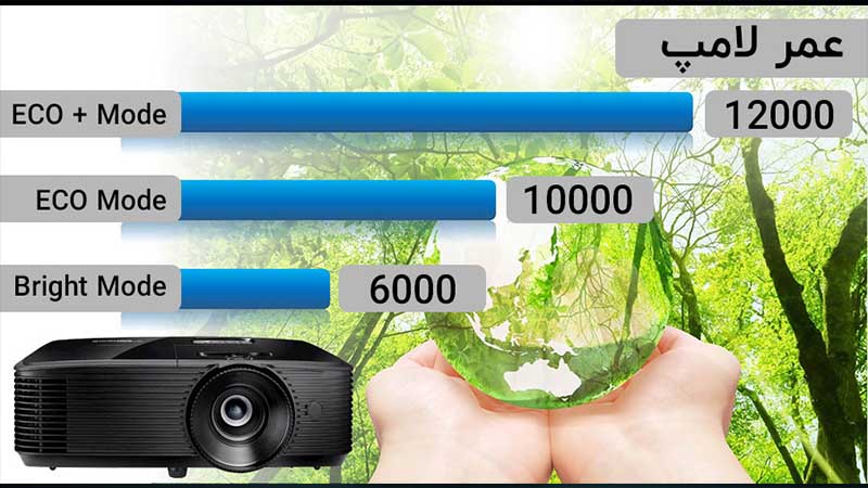 - لامپ این پروژکتور دارای طول عمر بالا است (تا 15000 ساعت در حالت Eco) که باعث کاهش هزینههای تعویض لامپ و صرفهجویی در انرژی میشود.