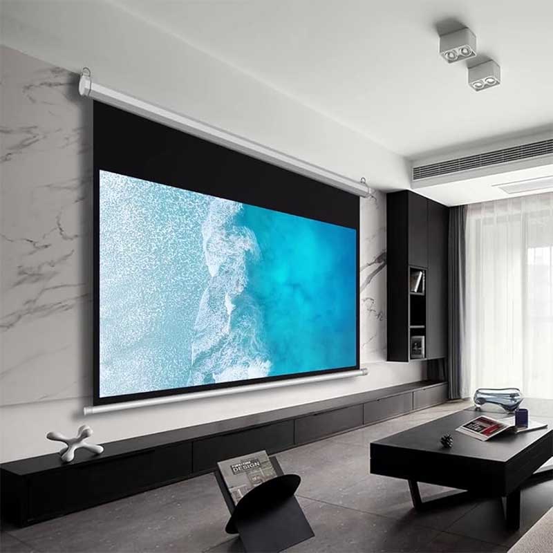 - رنگ: رنگ این پرده نمایش سفید است که به دلیل انعکاس نور مناسب، تصاویر را با وضوح و روشنی بالا نمایش میدهد. در نتیجه، تصاویر پروژکتور با کیفیت بهتری دیده میشوند.