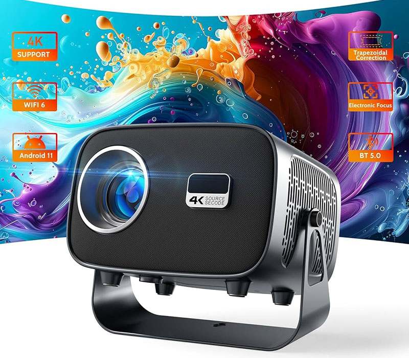 این پروژکتور دارای پورتهای متنوعی از جمله دو پورت USB، یک پورت HDMI 1.3 و یک پورت صوتی 3.5 میلیمتری است که امکان اتصال به دستگاههای مختلف مانند لپتاپ، کنسول بازی، حافظههای USB و اسپیکرهای خارجی را فراهم میکند. علاوه بر این، با پشتیبانی از فناوری WiFi 6 و بلوتوث 5.3، میتوانید به راحتی محتوای خود را به صورت بیسیم به پروژکتور منتقل کنید. همچنین، قابلیت screen mirroring این امکان را فراهم میکند تا صفحه نمایش دستگاههای iOS و اندروید خود را به پروژکتور متصل نمایید.